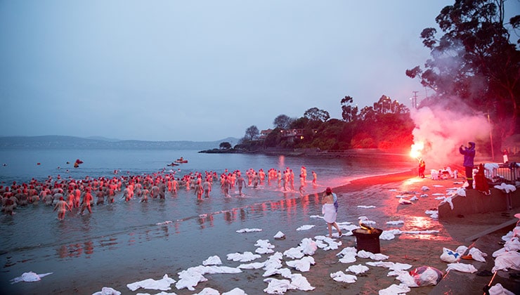 A communal ritual in which over 1000 brave souls welcome back the first sun after the longest night of the year, by diving nude into the winter ocean.