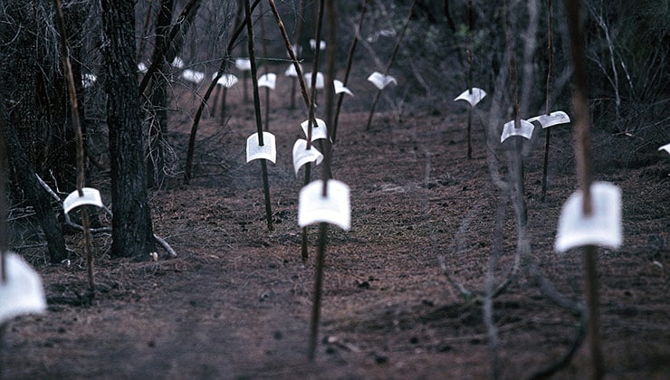 An ephemeral memorial to one hundred and eighty children stolen or lost during the early colonial years of the island. Part of Tense Past, Gough’s exhibition at TMAG. Presented by the Tasmanian Museum and Art Gallery and Dark Mofo, supported by Gandel Philanthropy.