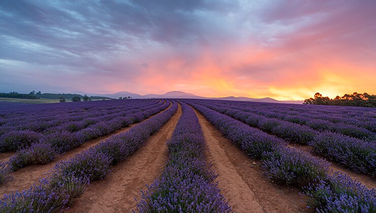 From purple lavender fields to a vivid blue lake, get ready to colour-bomb your next Tassie escape.