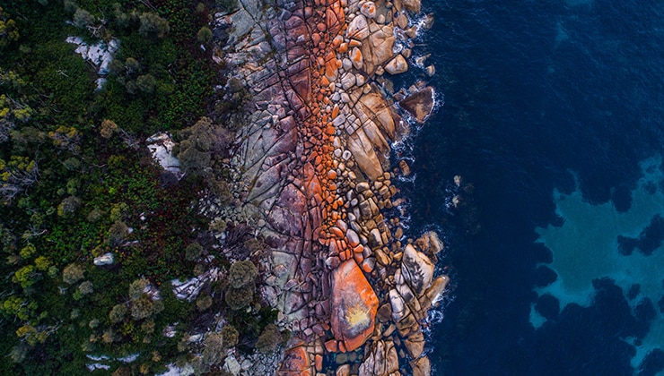 Aerial of Bay of Fires. Photo: Stu Gibson.