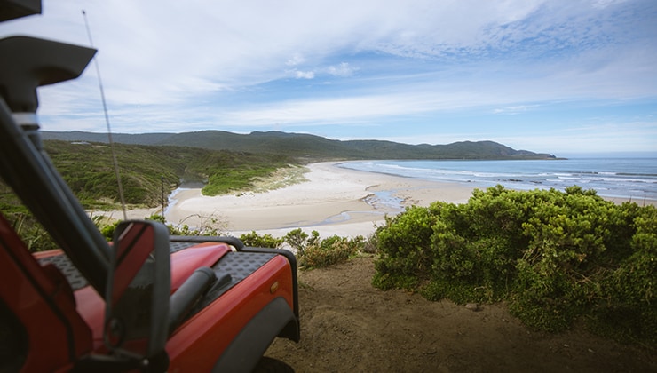 Get your 4WD skills up to speed on the cruisy nine-kilometre Eaglehawk Neck Lookout Track, starting about an hour’s drive east of Hobart. Follow the track through bushland to the lookout for grand views of the sea, and the narrow isthmus joining the Tasman Peninsula to the rest of Tassie. The lookout is just inside Tasman National Park, so you’ll need a Parks Pass. It’s small change well spent, especially if you also visit natural wonders like Waterfall Bay and Remarkable Cave, keep practising on the Fortescue Bay 4WD Track, and even stay overnight.