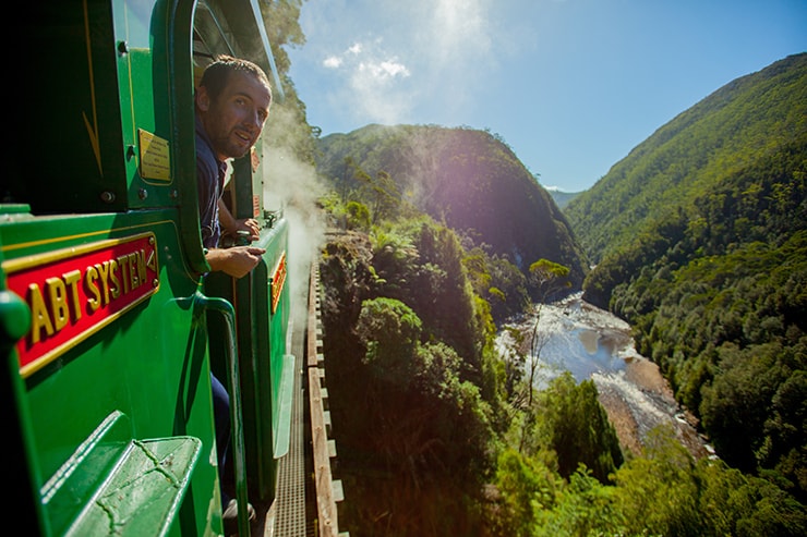 Strahan’s other essential experience is the West Coast Wilderness Railway. Heritage trains choo-choo along the line carved through rugged rainforest in the 1890s to link Strahan and the hinterland’s mines. The journey’s now about pleasure, from beautiful views to sparkling wine, with historic stops along the way.