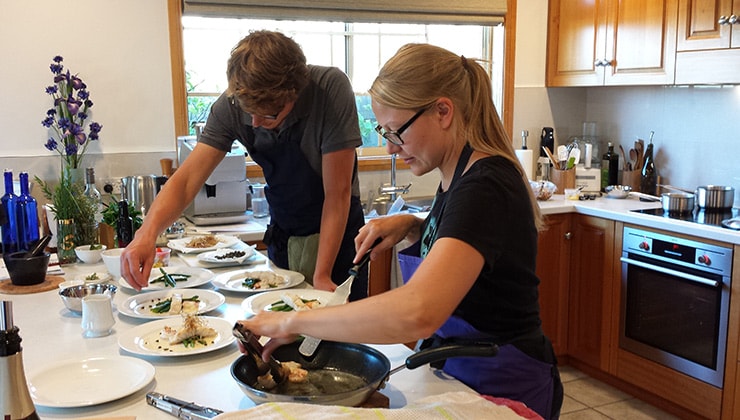 If you’re coming to Tassie to feast on its famous food, why not dive right in at a cooking school? Some of the state’s top chefs can take you from harvesting produce so local it’s often just outside the kitchen, to savouring your creations with new friends and gorgeous views.