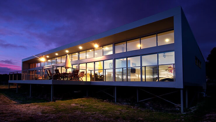 After a not-so-hard day exploring Bruny Island, kick back with local produce and wine at Sunset Bay Escape. Watch the sunset or even the whole day slip by at this holiday house with a big deck and walls of glass that immerse you in panoramic views of Sunset Bay, nearby Satellite Island and the Hartz Mountains beyond. Exclusively yours for a romantic escape or leisurely group getaway, this modern, spacious home-away-from-home has everything required for self-contained bliss.