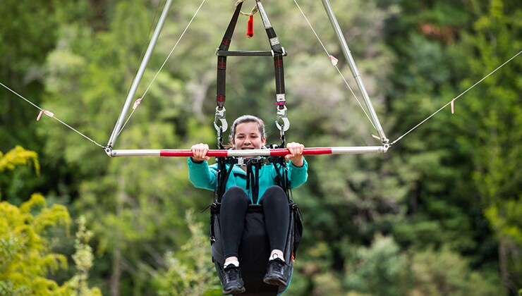 Feel the fresh breeze as you sit in the supportive harness of Tahune Adventures' Eagle Hang Glider and fly over the Huon River! After a staff member safely straps you in, the cable-controlled solo glider is gently hauled backwards, across the Huon River and up into towering trees. Then it’s go time, as you whizz back across the river, enjoying panoramic wilderness views, before a soft landing.