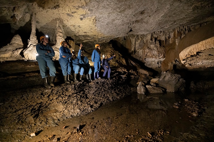 The guided tours of Marakoopa and King Solomons caves are easy – and awesome! – but more subterranean surprises await in Mole Creek Karst National Park’s undeveloped caves, which have no lighting, handrails or steps. If you’re up for a bit of climbing, crawling, squeezing and wading through underground streams, join Wild Cave Tours on experiences ranging from an all-day, two-cave adventure to the popular family-friendly tour.