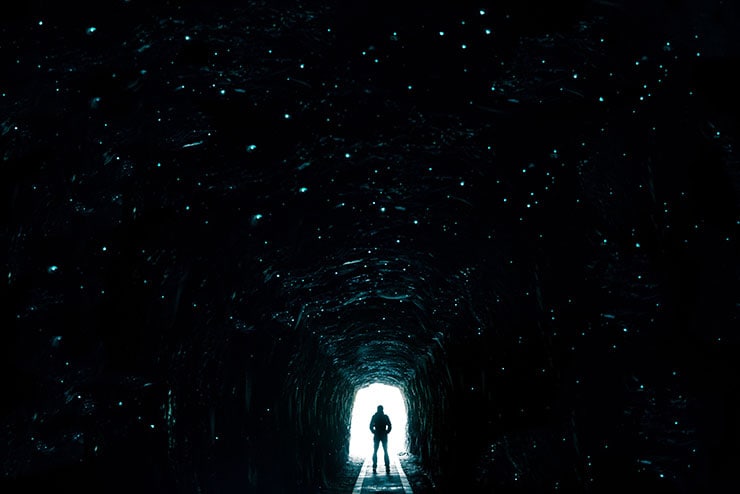 Look up at the glow worms about half way along! At the tunnel’s end you’ll find the abandoned buildings and boilers of the Spray Silver Mine, which closed in 1913.