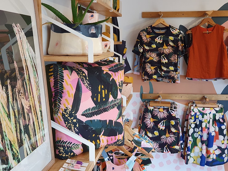 SQ Studio offers a range of Australian, often Tasmanian designed and created fashion, jewellery and homewares, such as classy cushions featuring a local landscape like Cradle Mountain. ShallDesign specialises in restyled vintage furniture and clever upcycled fabric creations, including skirts and shirts made from vintage Australiana tea towels.