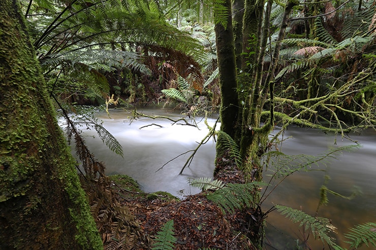 One of our favourite spots for Jurassic Park dreaming is Mount Field National Park, about an hour’s drive from Hobart. Here you’ll find waterfalls and glacial lakes, ferns, fungi, moss, towering eucalypts and pandani plants, which only grow in Tassie. Less well known is Trowutta Arch, not far from Stanley on the Tarkine Drive. This big natural arch frames a vivid green sinkhole pond in one direction, and a mass of tree ferns in the other.